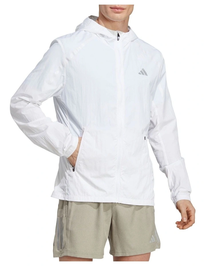 You’ve spent months preparing. Stay ready on race day in this adidas marathon warm-up jacket. The water-repellent finish sheds light showers, and stretchy side panels let you move freely as you limber up.