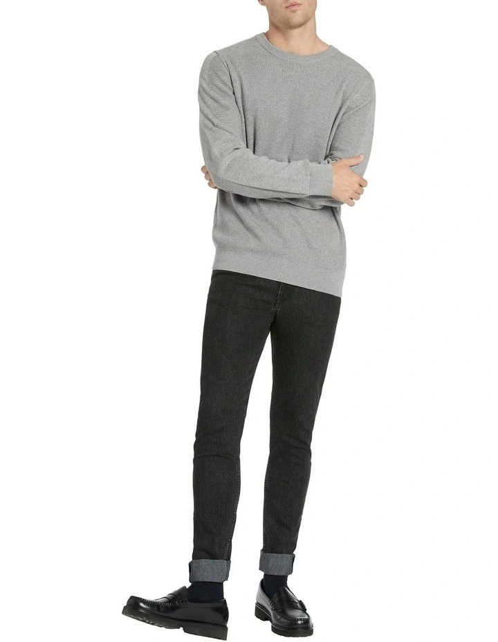 As an easy-wearing addition to your wardrobe, this grey knit sweater effortlessly takes you from casual to smart-casual as cooler weather closes in. Soft against the skin, the sweater is made from pure cotton yarn, creating a regular fit through the body and long sleeves. Further detail is offered in textured rib feature panels throughout, and rib trim at the crew neck, cuffs and body hem.