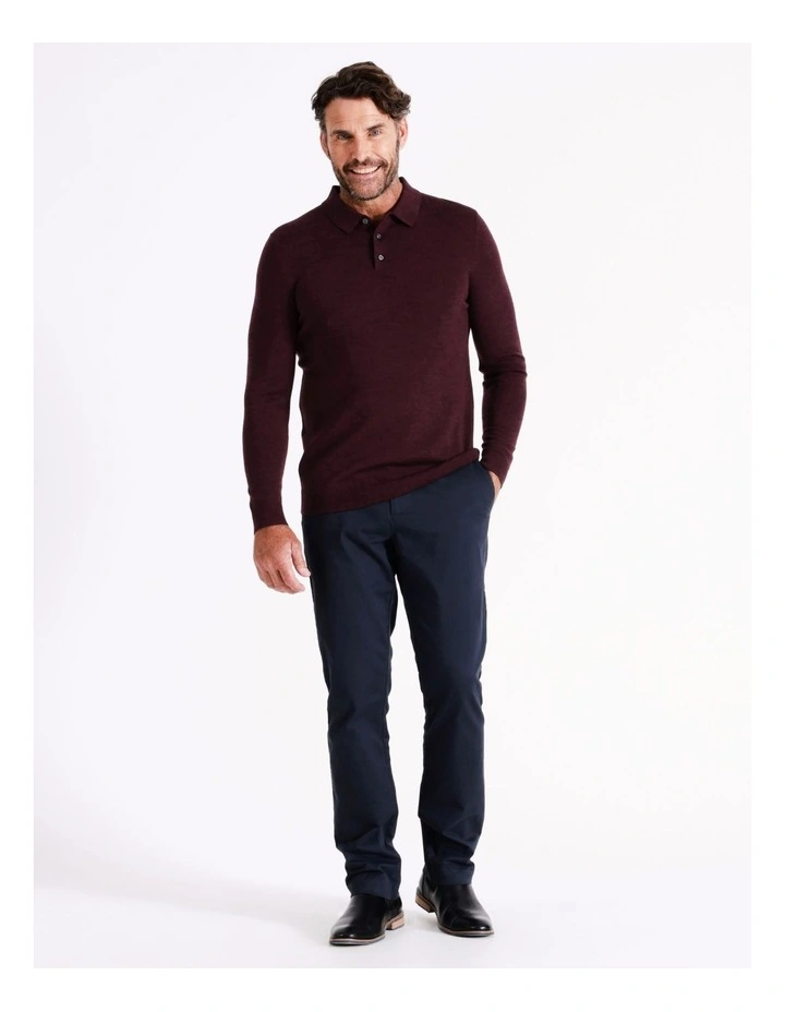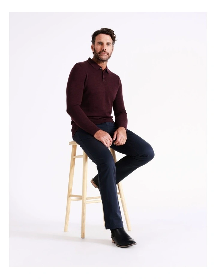 Reserve Australian Merino Knitted Long Sleeve Polo in Red