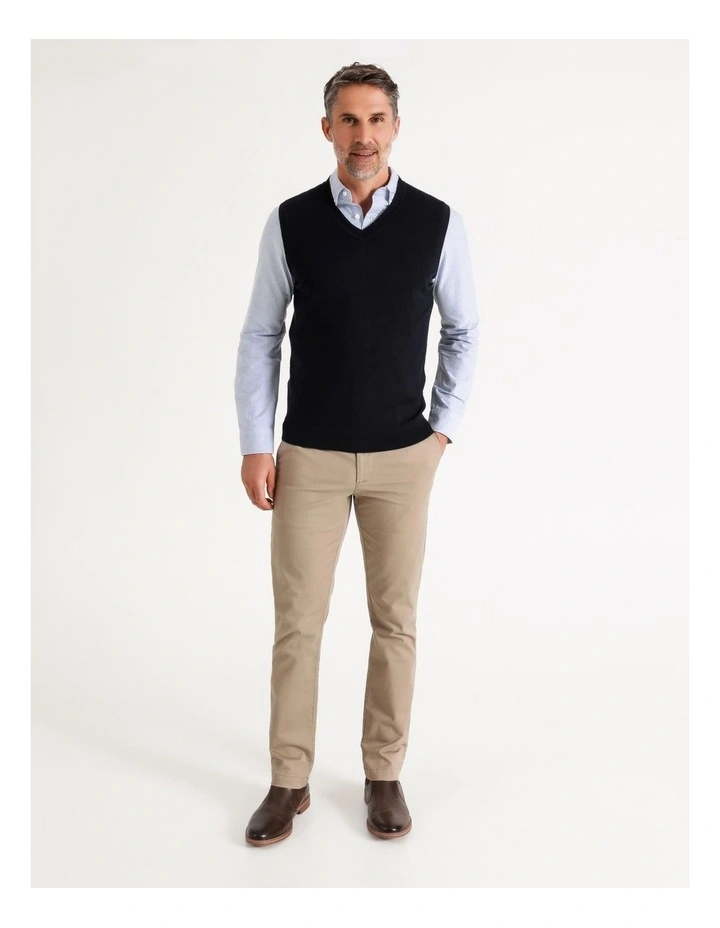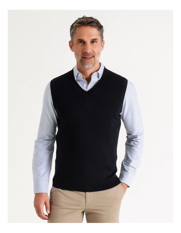 Go from desk to dinner in a sophisticated vest. This vest is crafted from 100% Australian Merino wool for a comfortable and durable finish, with a clean design that will complement every outfit.