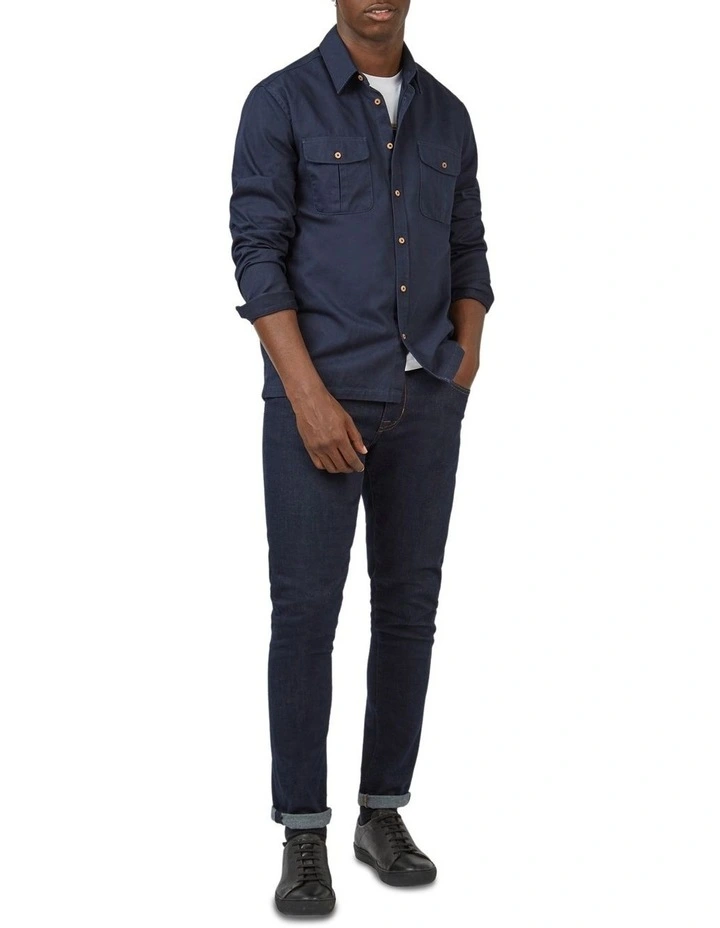 This Ben Sherman cotton twill long sleeve shirt comes in an overshirt fit and features a casual point collar.