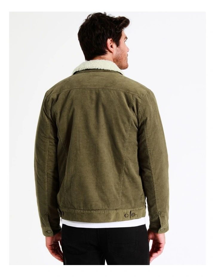 - Cord texture design with sherpa collar