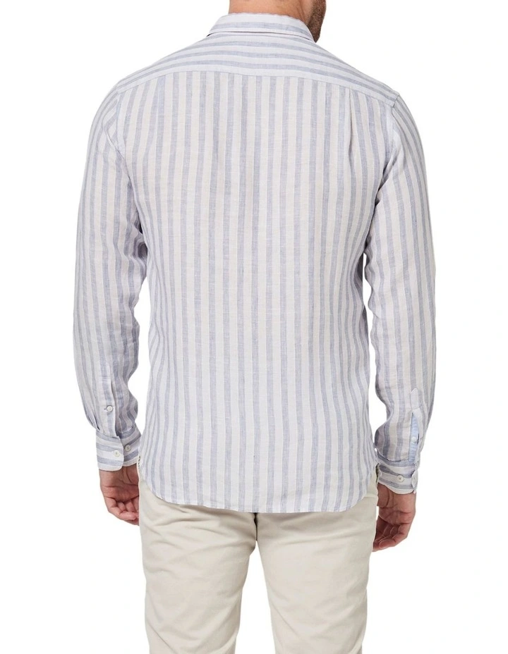 In the summer heat, you might be looking for clothing that is both comfortable and stylish. The Dominic Long Sleeve Linen Stripe Shirt is the perfect option to keep you cool while still looking put together. Made from soft, woven linen, this quick-drying shirt is the perfect fit for long days.