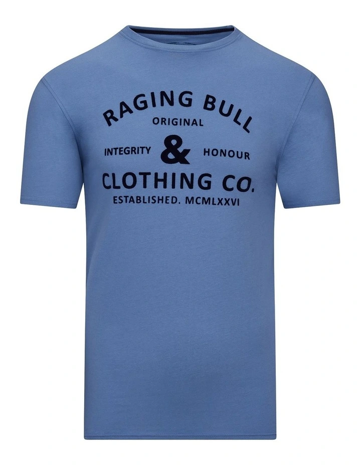 Proudly show your Raging Bull passion with this classically lettered flock graphic t-shirt. Whether you’re pairing with jeans for a casual day or layering up at a match, the cotton blend gives serious comfort and longevity. Iconic bull logo features on the right sleeve.