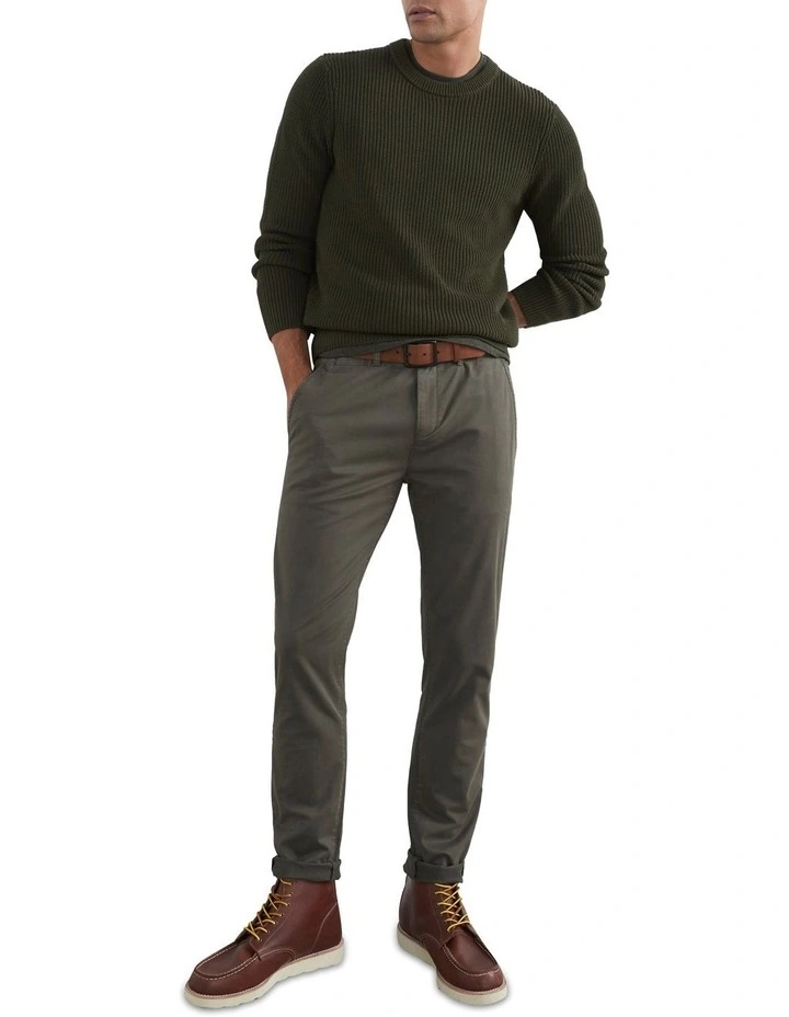 The Fisherman Rib Knit is a stylish and versatile essential. Made 100% cotton with natural stretch, it features a regular fit, ribbed fabric design and a crew neck. Wear with our slim chino pant, Sean Leather Chukka Boot and Rugged Jersey tee. Our model is 188cm tall and wears a size M.