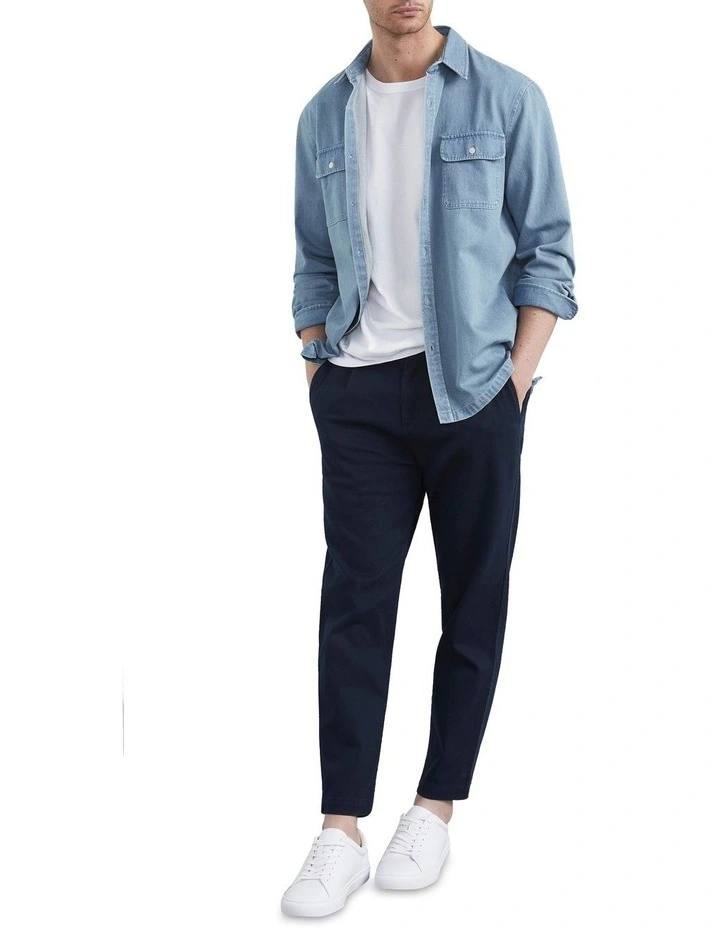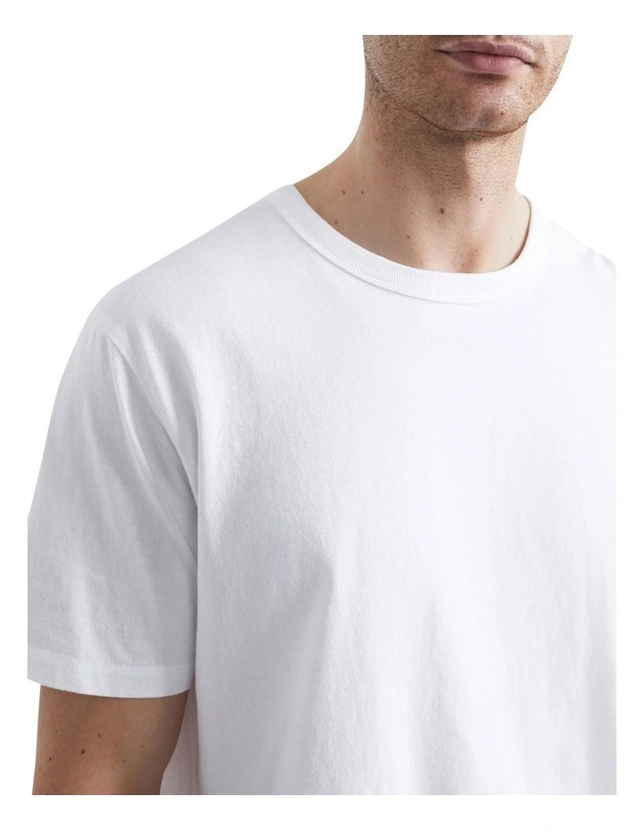 Our Rugged Jersey T-shirt offers a soft and durable foundation layer for any outfit. Featuring a relaxed fit, round neckline, and garment-dyed wash design. Wear with our Marine Plaid Classic Fit Shirt and Slim Tapered Jean. Our model is 188cm tall and wears a size M.
