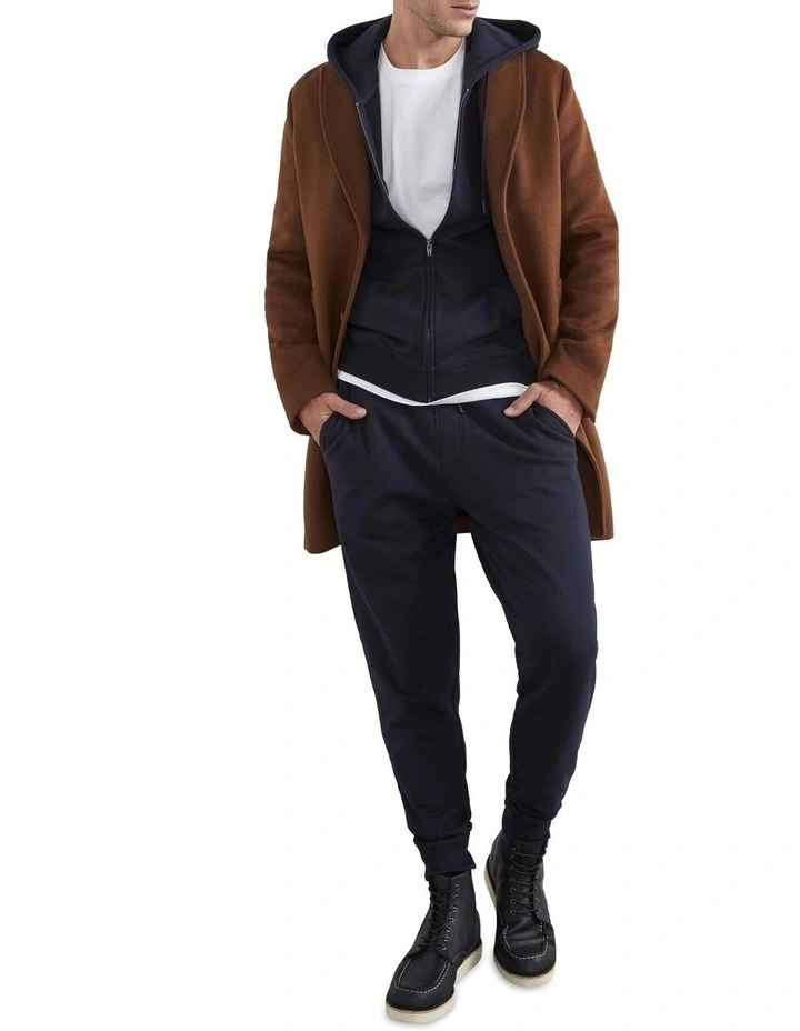 Our Sweat Pants are an everyday wardrobe essential. Made from a comfortable, heavierweight terry cotton blend fabric with some stretch, they feature an elastic waistband, drawcord, elasticated ankle cuffs and a back pocket with subtle branding detail. Wear with our Classic Crew Neck T-Shirt, Zip Thru Hoodie, Casual Coat and Sean Chukka boot. Our model is 188cm tall and wears a size M.
