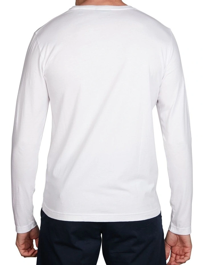 This classic tee is an absolute wardrobe staple, from fit to style. Whether toning down a smart pair of slacks, or teaming with essential denim, this versatile, long sleeve T-shirt won’t let you down. * Regular fit * Lightweight single cotton jersey * Fine rib at neck * Chain stitch at back shoulder * Classic GANT shield embroider