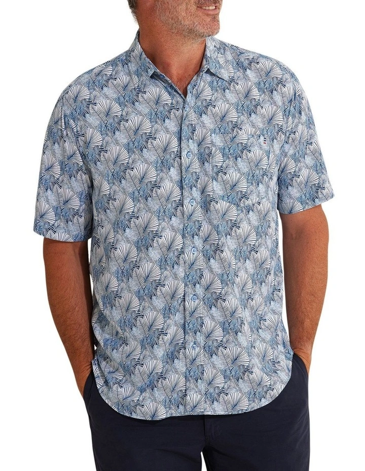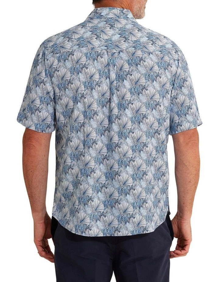 Harlem! This subtle leaf print check in coastal shades of blue utilises the cool drapability of bamboo with an effortlessly breezy summer print.Â
