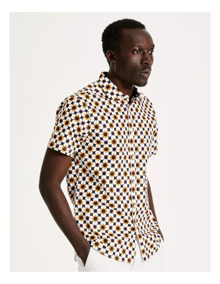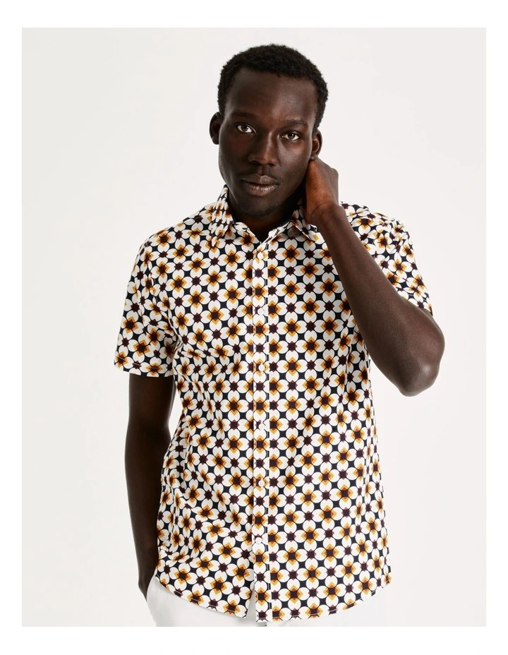 Blaq Harry Geo Print Short Sleeve Slim Shirt in White
