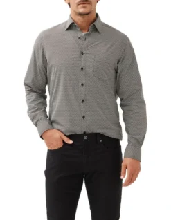 Add a touch of vintage flair to your wardrobe with this striking geo-print shirt.Expertly crafted by the renowned Italian mill Albini, known for their century-longhistory of creating unique fabrics. Made from the finest quality 70s cotton yarnsfor ultimate smoothness and easy care, this shirt will be a statement piece inyour wardrobe for years to come.