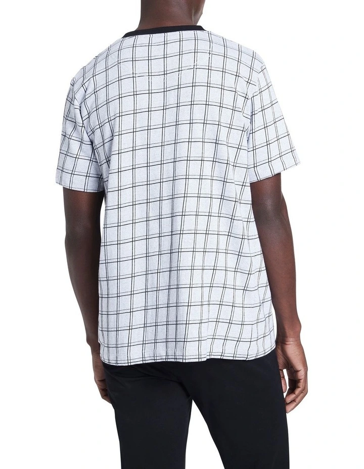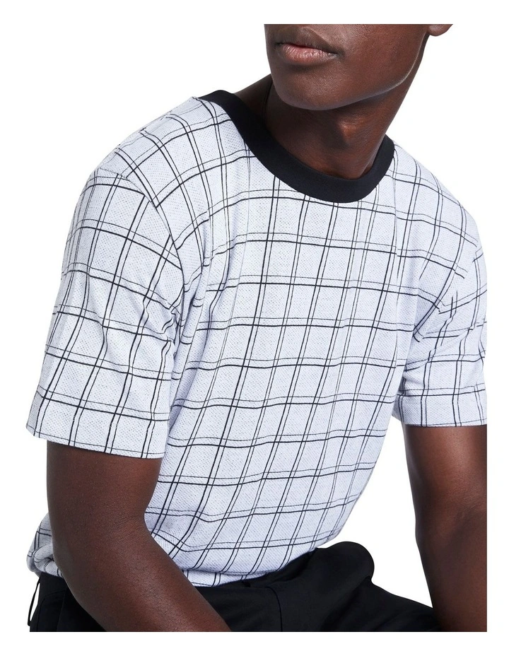 Showing off a large monochrome check, this tee creates an effortless yet stylish look, finished with eye-catching contrast black rib trim at the neckline. Soft against the skin, the tee is made from pure, breathable cotton, offering a relaxed fit throughout, with short tee sleeves, straight shaping at the hem, and a flattering crew neck design.
