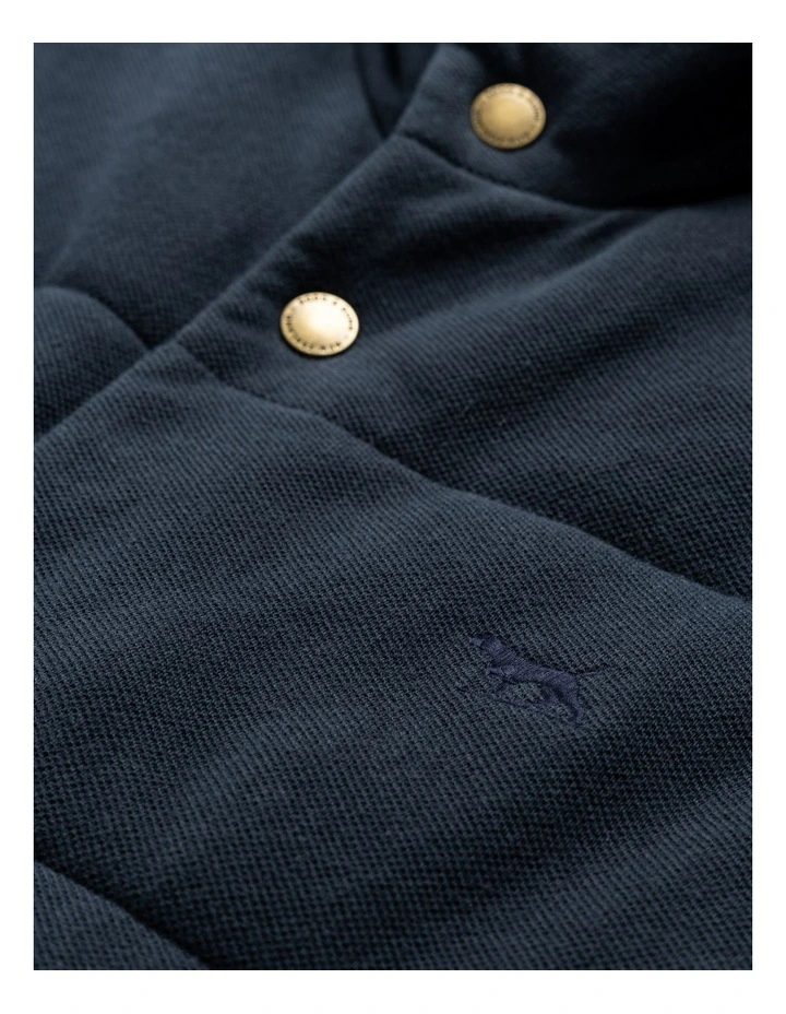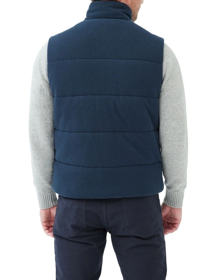 This vest is made from a soft and sporty double 32s pique fabric, crafted from100% USA cotton. Its the perfect versatile layer for changing weather, and isbatten-quilted with lightweight synthetic high loft insulation for superior warmth.The interior is lined with a soft single 32s jersey, and features an internal weltpocket for added storage. Easy to care for at home by simple machine wash.