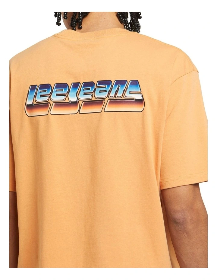 The Lee Y2K Baggy Tee in Sherbet is a loose and baggy fit T-shirt, made in a heavier weight, recycled cotton jersey, with a super soft hand feel. Featuring a centre Lee logo graphic of the Lee Twitch logo with a Y2K inspired, computer generated Lee Jeans logo on the back of the T-shirt.