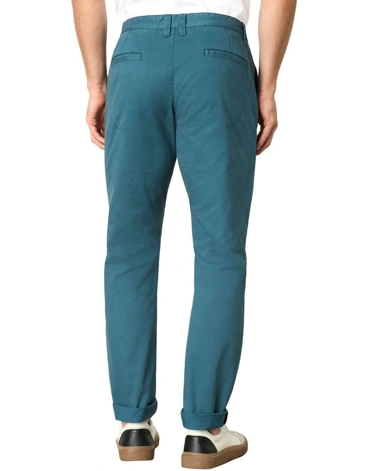 The McQueen Chino is an M.J. Bale seasonal staple crafted from Australian cotton-twill that provides extra flexibility and comfort. It is garment-dyed and washed for a smart-casual hand feel. Roll the cuffs for an elevated look with the contrasting stripe details at the interior.