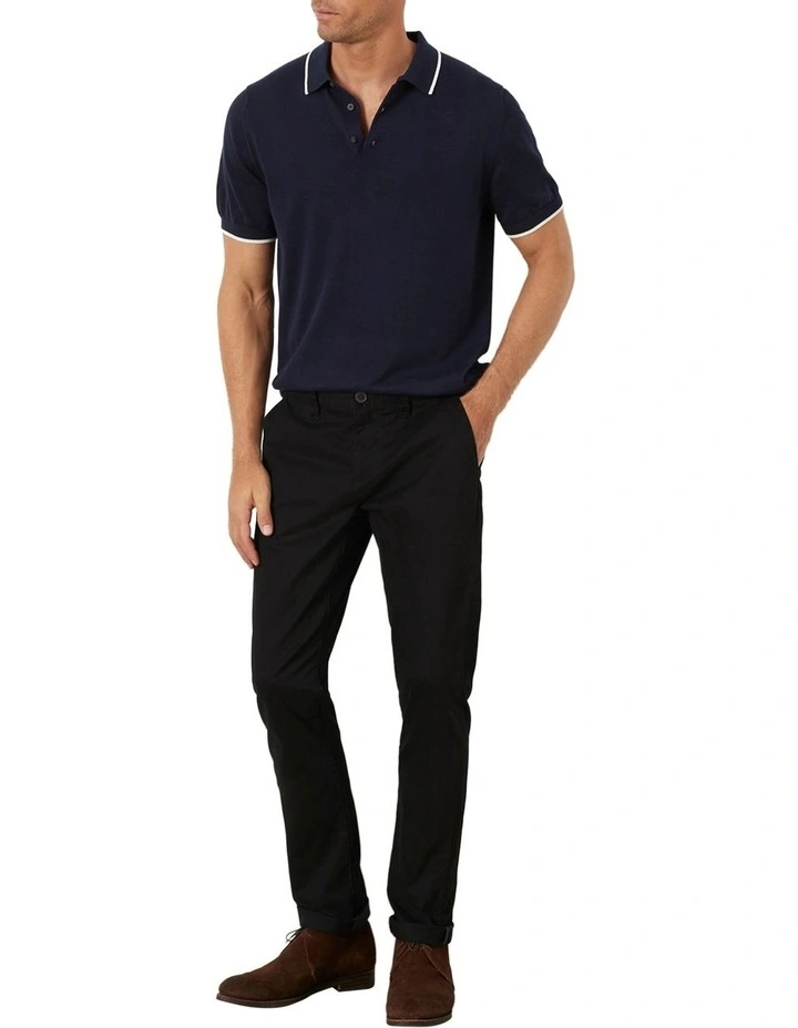 The McQueen Chino is an M.J. Bale seasonal staple crafted from Australian cotton-twill that provides extra flexibility and comfort. It is garment-dyed and washed for a smart-casual hand feel. Roll the cuffs for an elevated look with the contrasting stripe details at the interior.