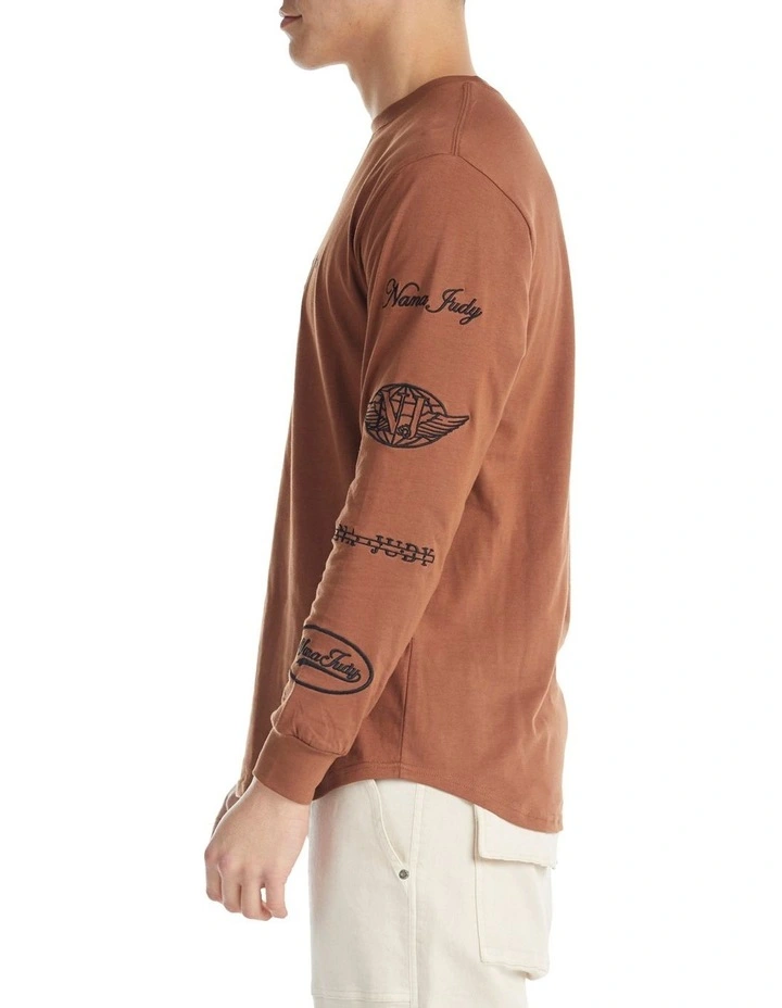 The Nana Judy Monte Long Sleeve Tee is a classic cut long sleeve tee in a premium Clay coloured cotton jersey. Featuring contrast multi logo detail down both sleeves and premium classic logo detail across the chest.