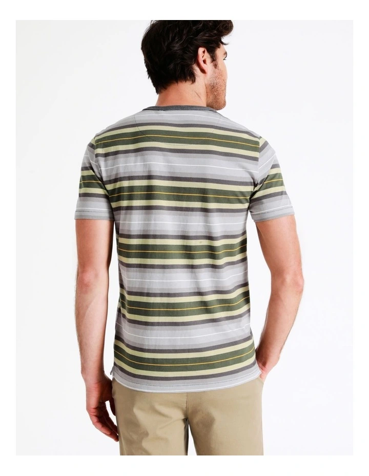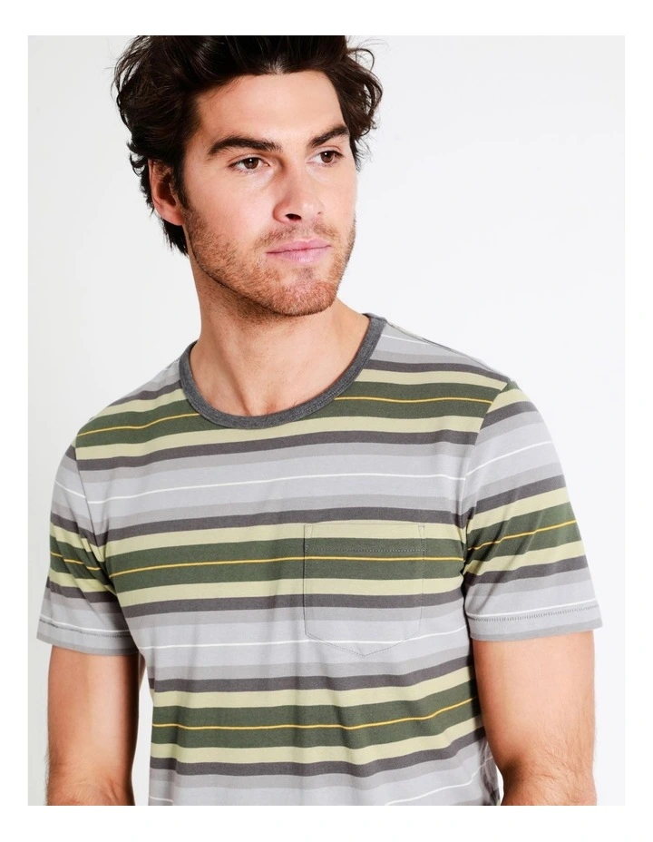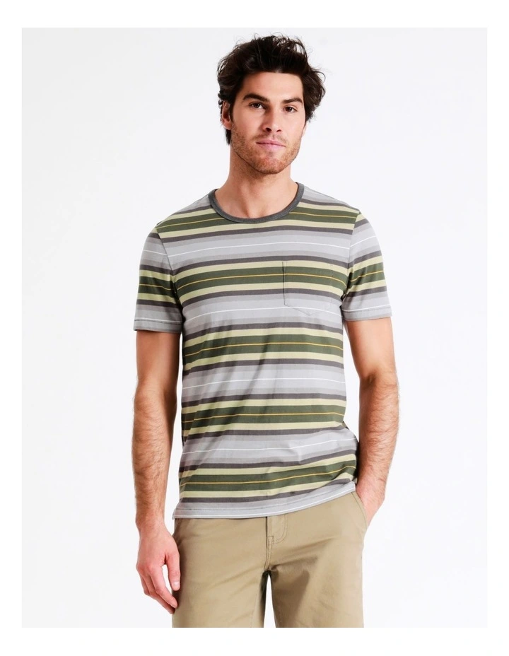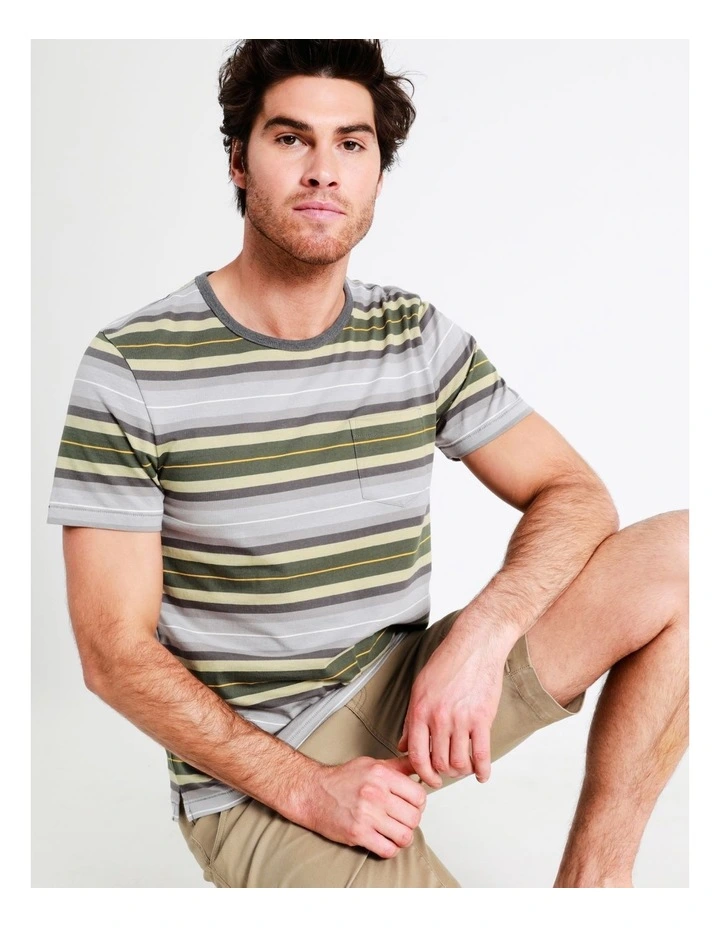Dress in style with Maddox. This short sleeve tee is made with cotton for comfort and durability, with an all-over striped print that you’re sure to love. Wear it with your best denim for the perfect casual fit.
