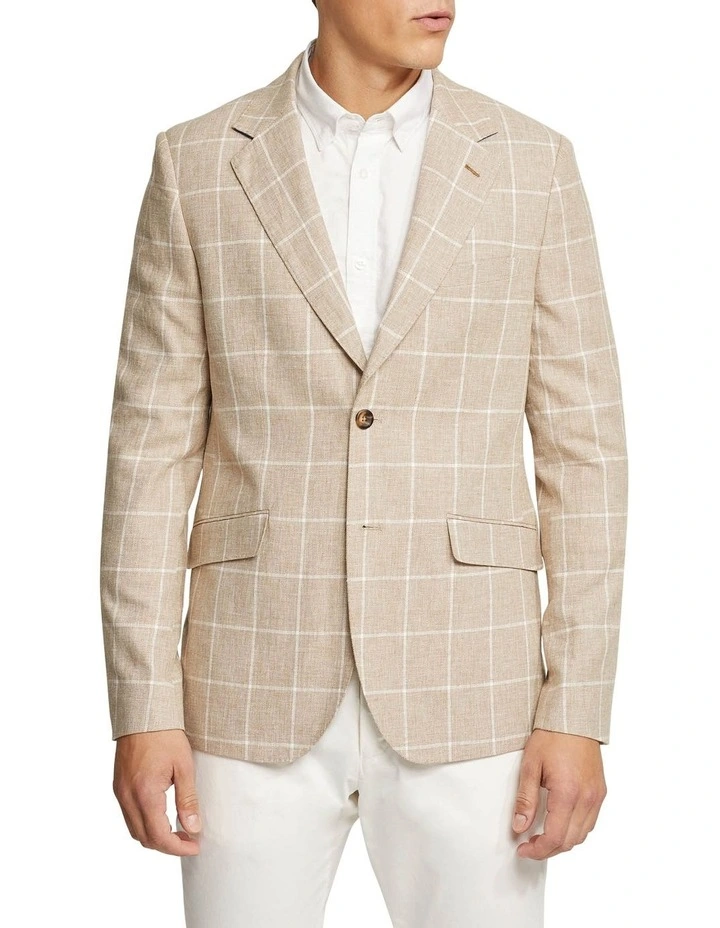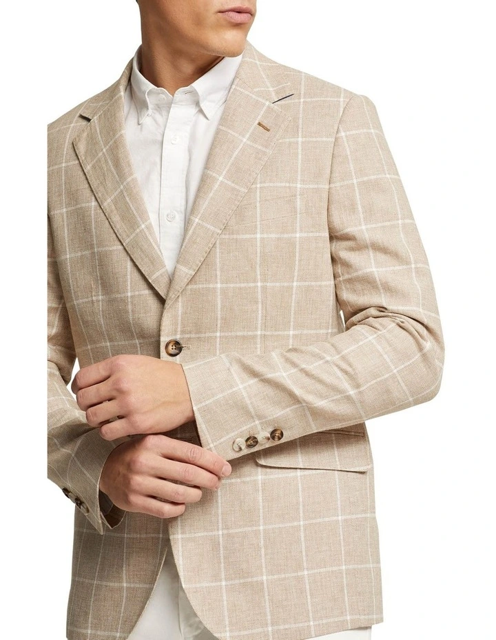 The Blake Linen Cotton Blend Checked Blazer is your instant style upgrade. This dapper blazer is perfect for the warmer months with its lightweight linen and cotton fabric. It is cut in a slim fit and has a check pattern for a more casual feel. Throw it over a white shirt and white chinos with slip-on shoes for a crisp look.