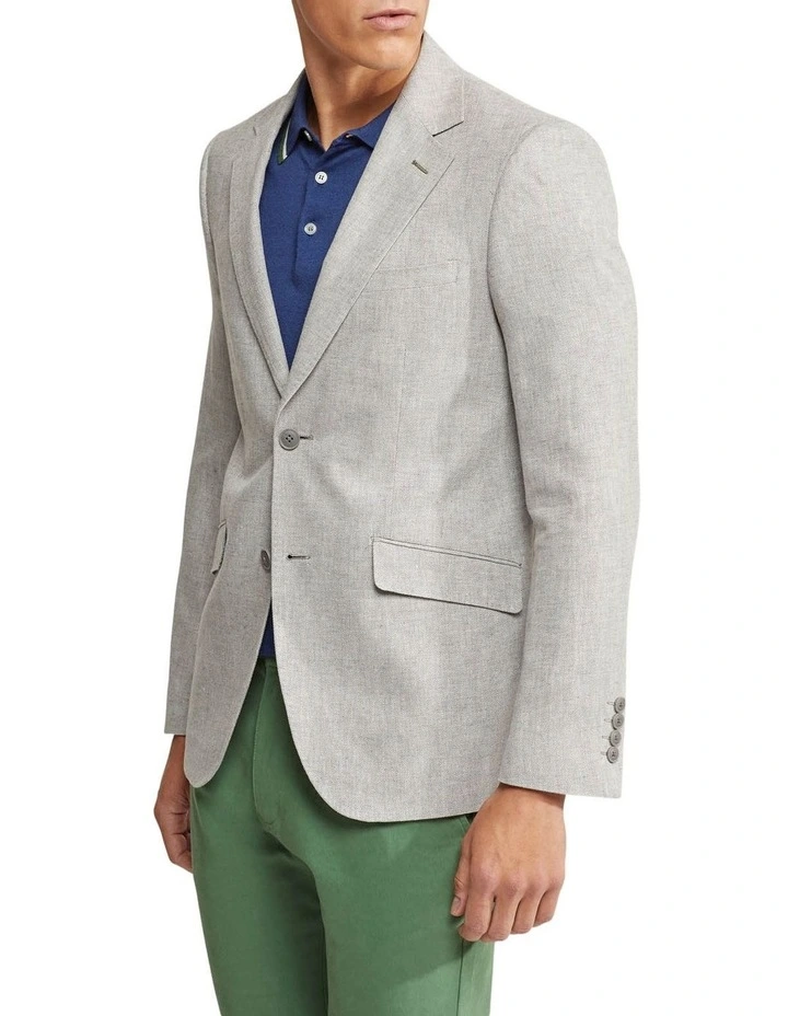 The Blake Linen Blend Herringbone Blazer is your instant style upgrade. This dapper blazer is perfect for the warmer months with its lightweight linen and cotton fabric. It is cut in a slim fit and has a subtle herringbone pattern for a more casual feel. Wear it with some chinos in a fashion colourway and some sneakers for a fresh look.