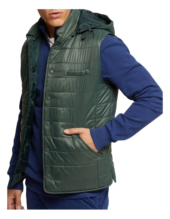 Your adventure look needs the Bruno Eco Filling Puffa Vest. This puffa is insulated with eco-friendly recycled polyester and features press stud front, pockets on the side, chest and inside, a detachable hood with drawstring and water repellent exterior. Wear it over your weekend track wear for an on-trend off-duty look.