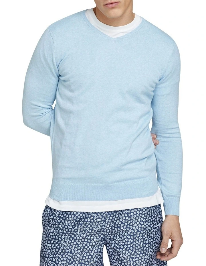 The Cotton Cashmere V-Neck Pullover is a reliable basic you’ll be sure to go back to season after season. Constructed in a soft yet durable cotton and cashmere blend, it is an ideal light pullover for transeasonal dressing. Wear yours layered over a classic t-shirt or collared shirt and pair it with rolled up chinos. Our model is wearing a size AU medium knit. He is 188cm (6’2”) tall with a 99cm (39”) chest and 81cm (31.8”) waist.