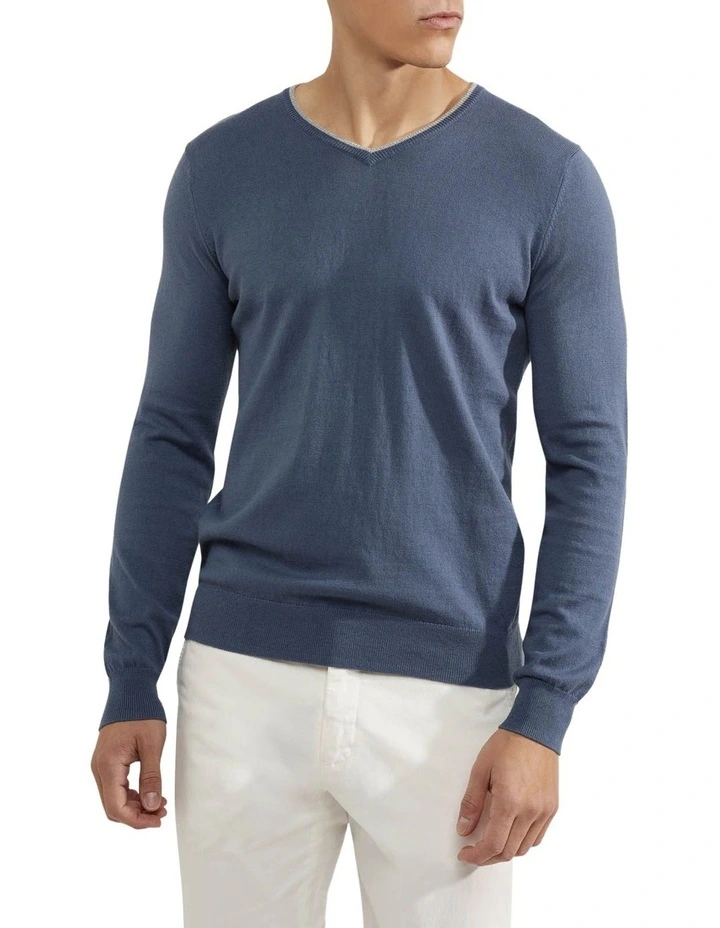 The Lenny Tipping V-Neck Cashmere Blend Pullover is a versatile and comfortable choice. This classic v-neck jumper is made from a super soft cotton and cashmere blend and features a contrast stripe on the neckline, and ribbed trims. Wear it with chinos and sneakers for a smart yet relaxed look.