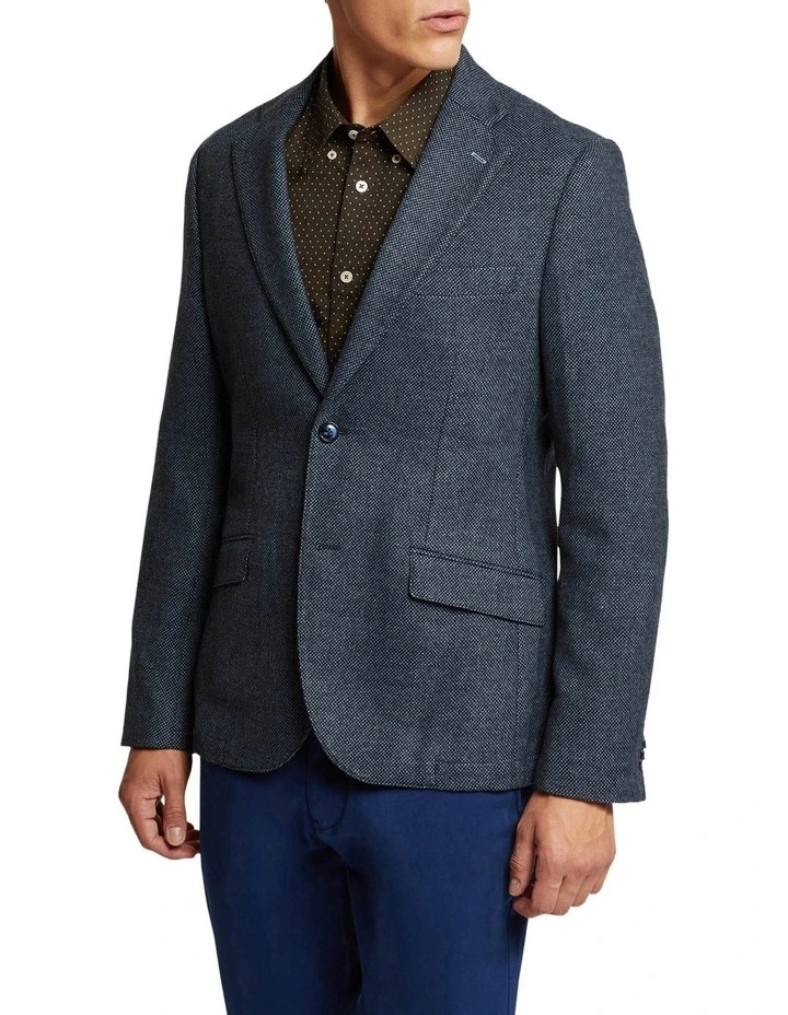 Smart casual style at its best, the Milton Wool Rich Blazer will elevate your weekend look. This smart jacket is constructed from a blend of wool and recycled polyester that is woven with a textured finish for a more casual feel. It is cut in a modern slim fit and features a contrast lapel button stitch, double button fastening, side and chest pockets and internal lining. Wear yours over a basic knit with chinos and sneakers.