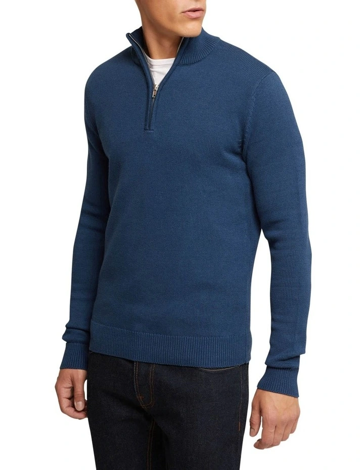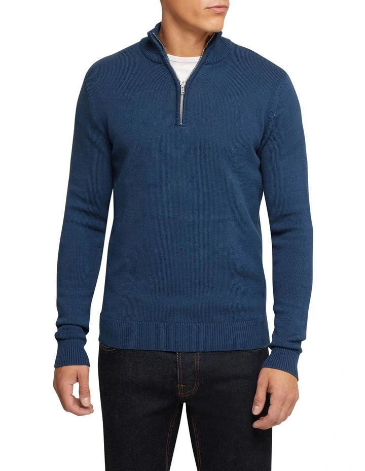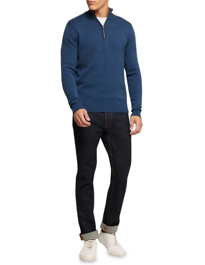 A stylish choice for weekend adventures, the Robert Zip Neck Knit Pullover will be a fast favourite. This mens jumper is crafted from 100% cotton in a knitted weave and cut in a slim fit. It has a high zip-up neckline and ribbed trims. Team it with chinos and sneakers for a relaxed weekend look.