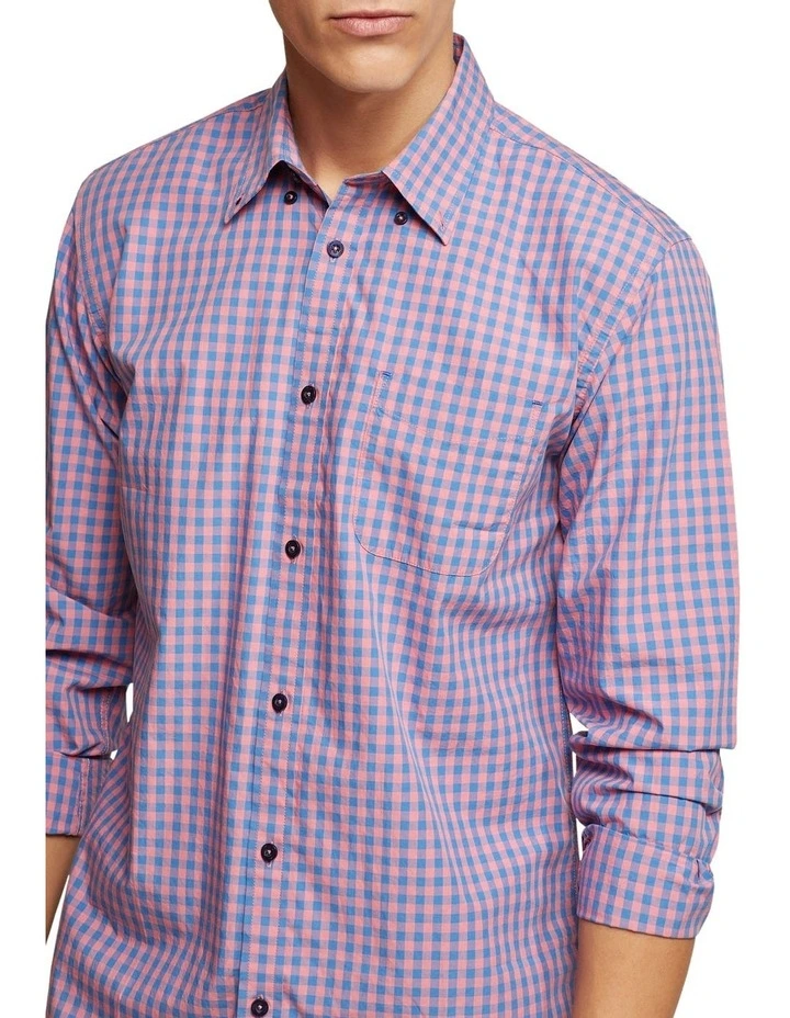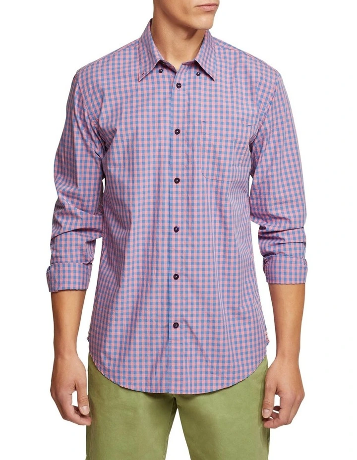The Uxbridge Gingham Shirt is the summer work shirt youve been looking for. This slim fit shirt is crafted from 100% cotton in a classic checked gingham weave. It features a small colour and single button cuffs. Just add some navy suit pants, leather shoes and a complementary tie for easy office style.