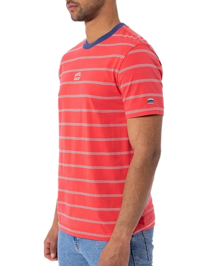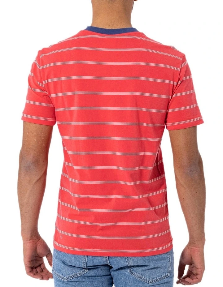 Elevate your everyday wardrobe with this San Diego Tee in Washed Red. Featuring our iconic small arch logo and a vintage stripe. The soft, breathable jersey fabric, ribbed neckline and classic fit makes this tee an everyday must have!