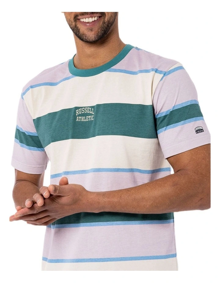 Elevate your everyday wardrobe with this Ivy Huntington Stripe Tee in Ivy Green. Featuring our iconic arch logo and a bold vintage stripe. The soft, breathable jersey fabric, ribbed neckline and classic fit makes this tee an everyday must have!