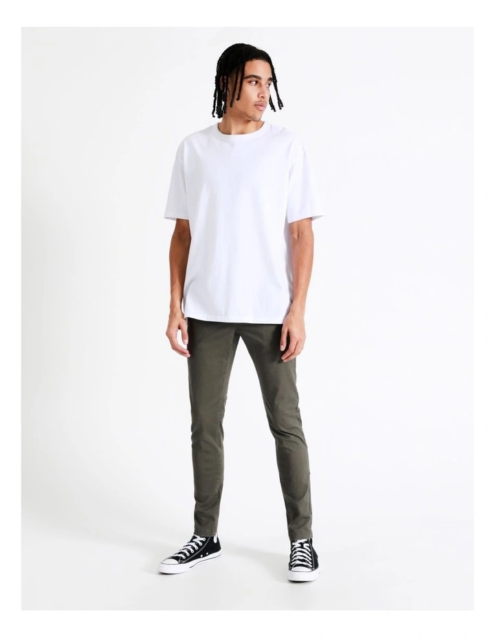 Every wardrobe needs a reliable pair of chinos. These chinos have a skinny fit, with functional pockets and a soft hand feel. Wear them with your favourite tee for an elevated everyday look.Â