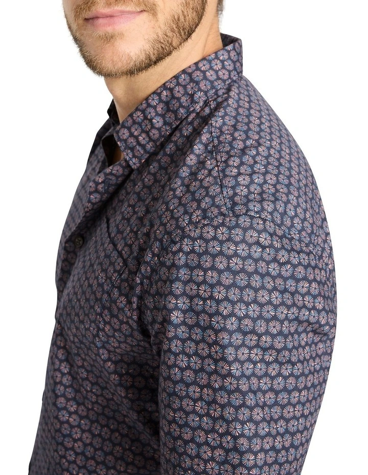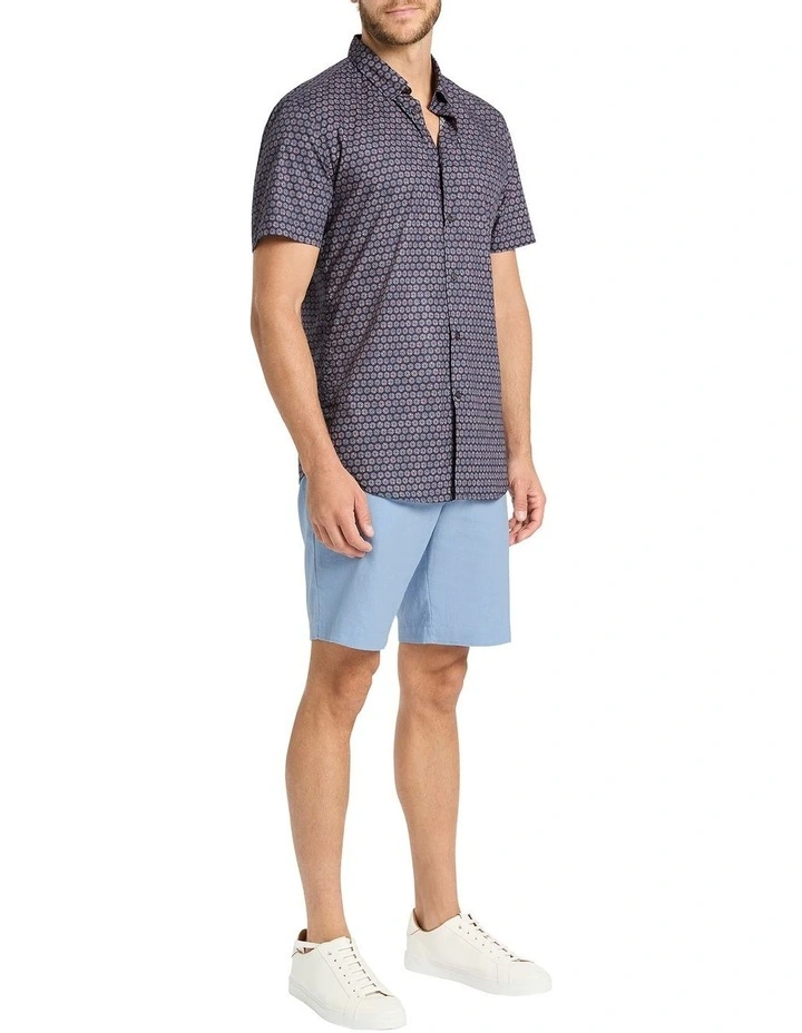 Layered over a tee or worn on its own, this short sleeve shirt remains gorgeously wearable, flaunting an all-over geometric print set against a navy base. Fastening at the front with gunmetal grey Marcs branded buttons, the shirt creates an easy regular fit within lightweight, breathable cotton, finished with a sharp shirt collar, curved hem shaping and a single patch pocket.