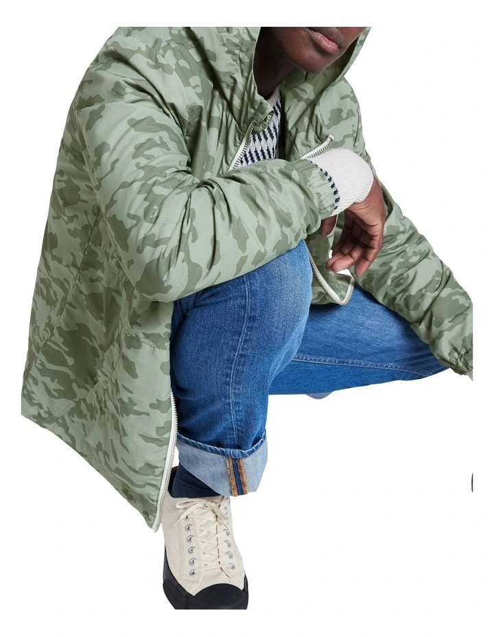 Endlessly wearable, this lightweight jacket is one you can just throw on and go, knowing that its camo colouring will pair back easily within your wardrobe. Fastening at the front with an exposed metal zip with contrast tape, the jacket offers a relaxed fit with elasticated toggles at the hemline for shaping, completed by a full hood and open pocketing at the waist.