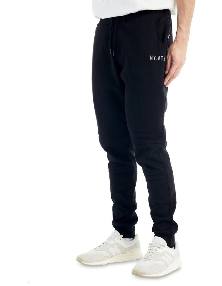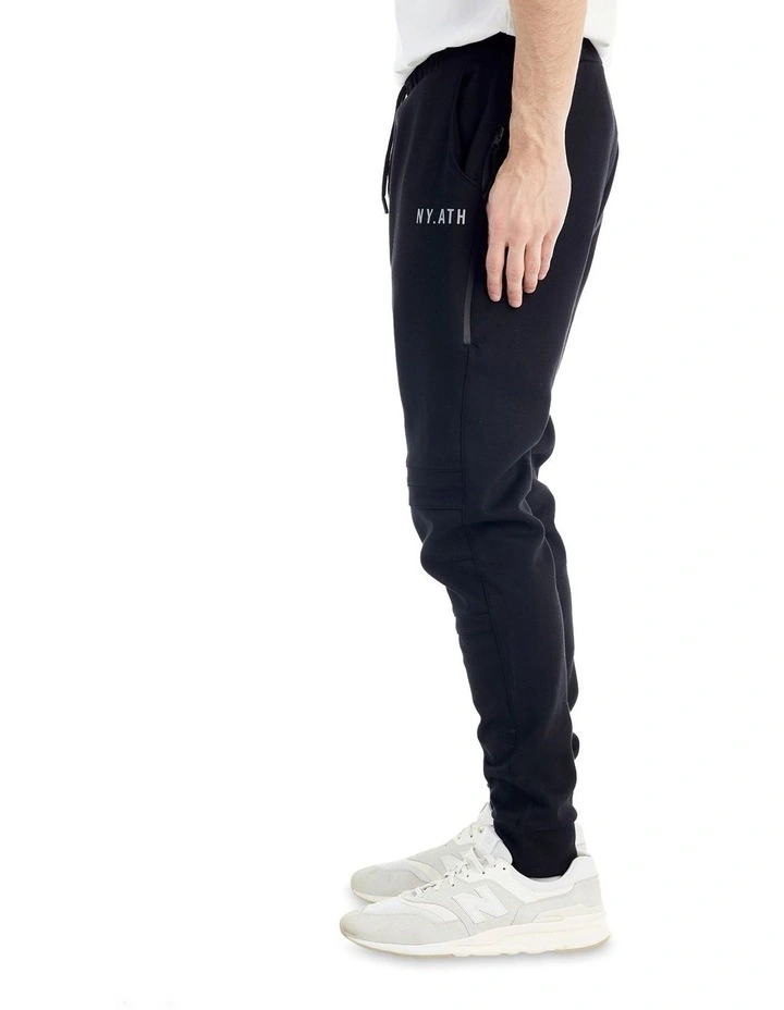 The nYATH State Track Pant is a tapered fit track pant designed in a smooth fleece fabrication with elasticated waistband.Â