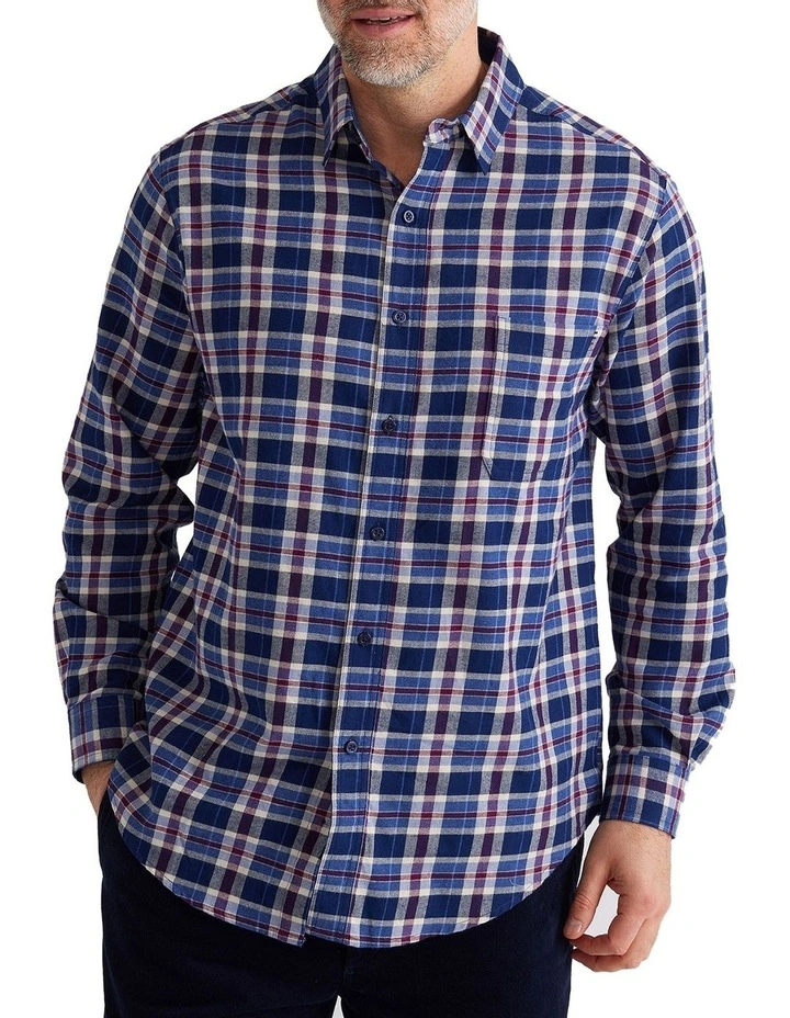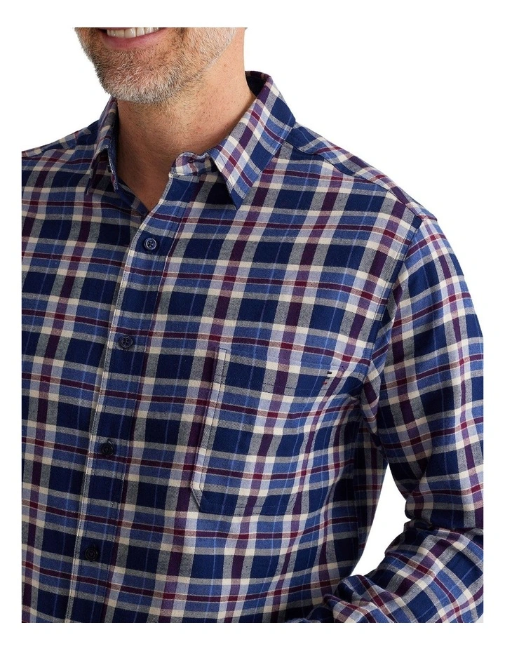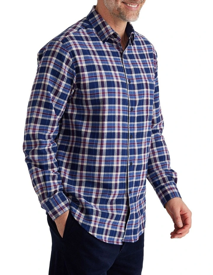 The Stride Shirt is made of superior 100% Cotton fabric & features a modern denim hued check with a pop of Dusted Grape that is on trend for this winter. Featuring a classic collar, button up front and long cuffed sleeves. All our Breakaway shirts feature our unique Smart Pocket to keep your mobile phone and valuables secure.Â
