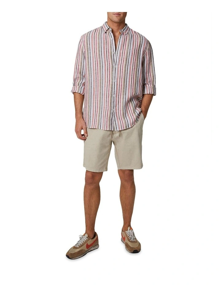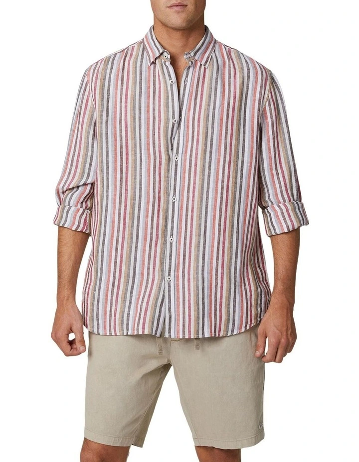Meet the Dominica L/S Shirt. A relaxed button-up fit constructed from 100% breathable linen. The sandy hues will match with any solid colour short.