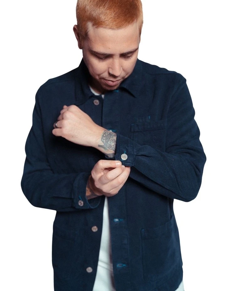 Introducing the Noskin Hemp Worker. A garment based on the traditional chore coat styles, with a modern and sustainable twist. Made from a carefully selected heavyweight blend of hemp and organic cotton, the Hemp Worker is heavy enough to wear as a jacket in colder months, but breathable enough to wear on summer evenings as an over-shirt. Subtle branding can be seen throughout the jacket with tonal embroidery on the chest and a non-leather jacron patch on the double folded deep hem. The quality of this jacket can’t be overlooked, with engraved alloy buttons, felled seams with reinforced twin needle stitching and internal utility pockets at the chest and hem (designed to fit a phone perfectly), the Hemp Worker is a durable garment, designed to last you a lifetime.