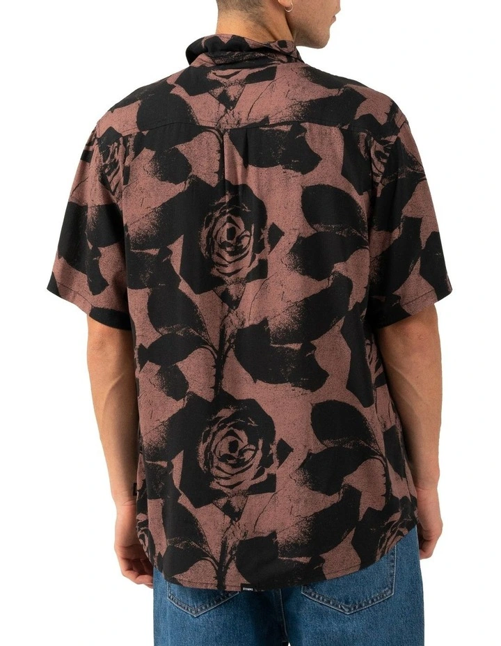 Zine photocopy inspired graphic with a 90s edge. Paradox of Paradise sits comfortable across tshirts and party shirts alike, the rose from the graphic forming the bold yardage.