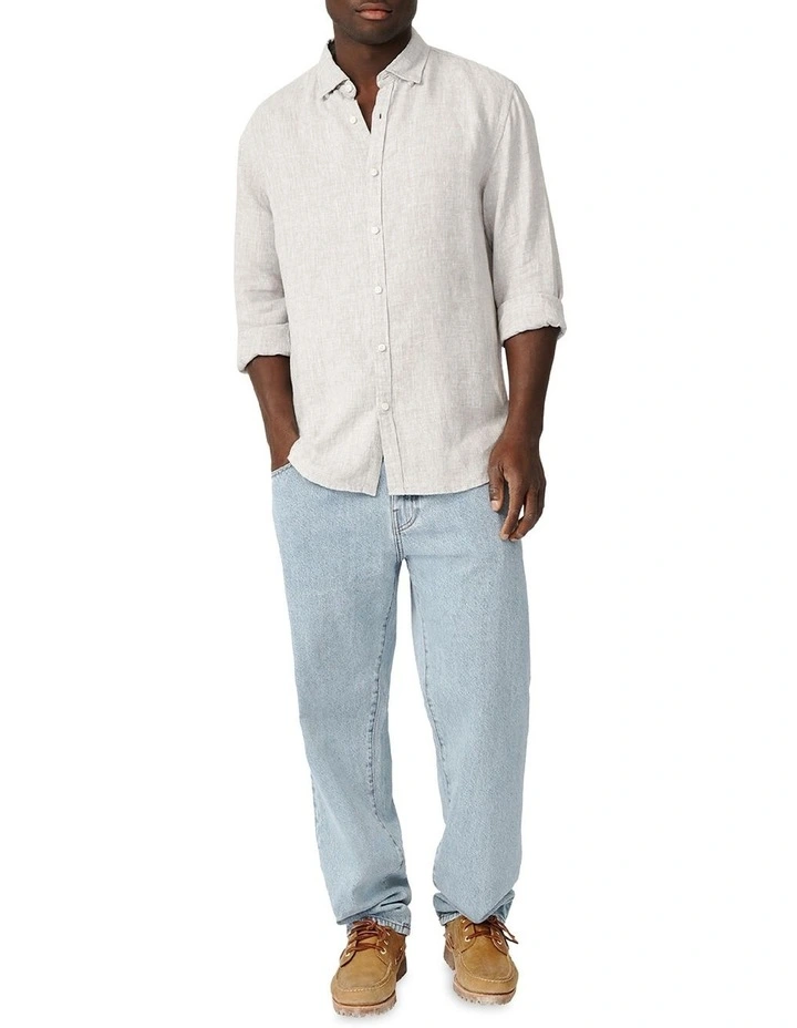 The Tenneriffe Linen L/S Shirt in the colour Salt & Pepper works back with the Seattle Jean in Stone Wash . Relaxed fit, durable linen fabric and all the classic elements of a good shirt (collar, front button fastening & rolled sleeves)